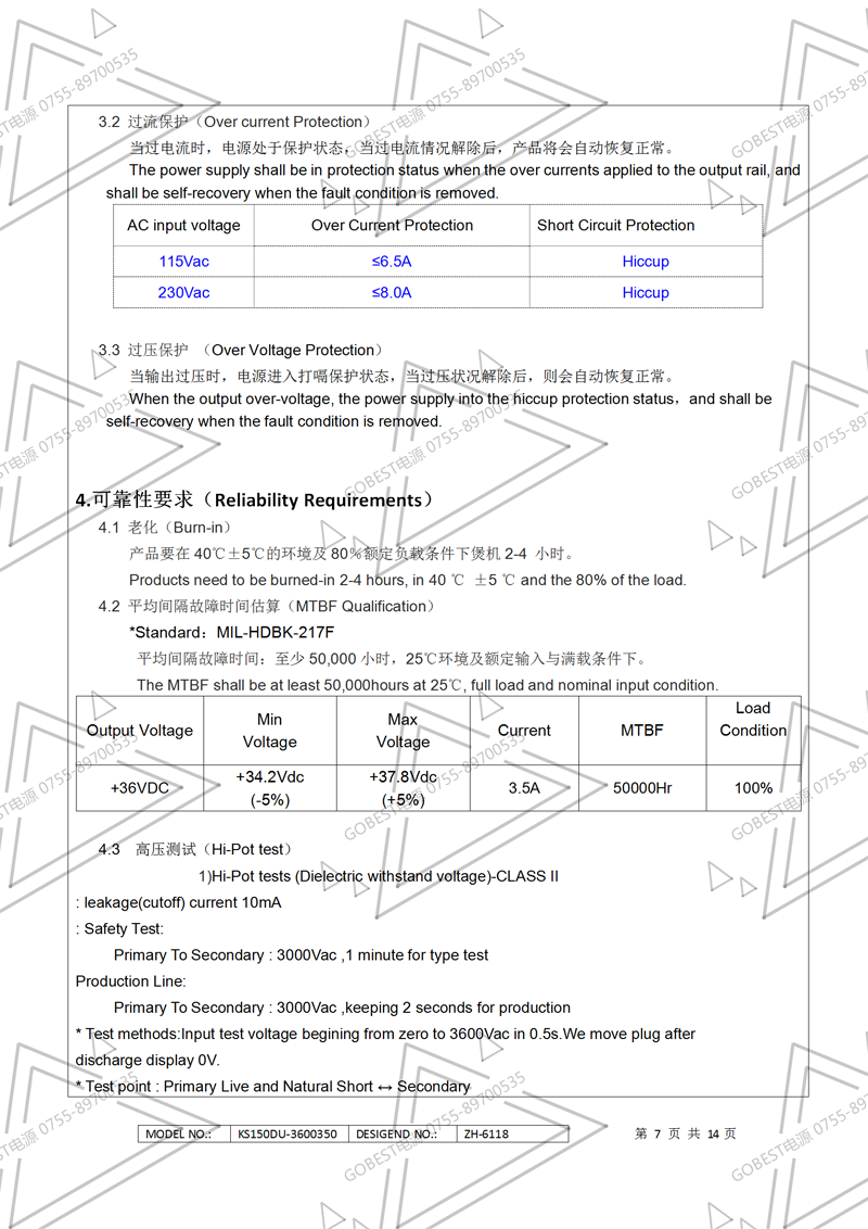 36V3.5A電源適配器規(guī)格書美規(guī)UL認證